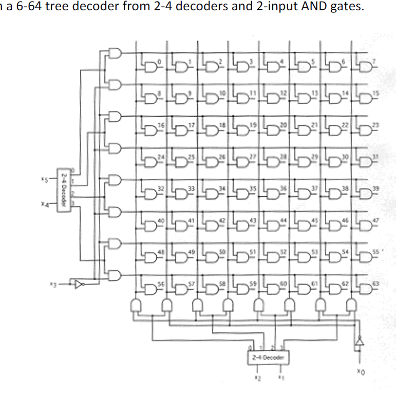 Show How To Implement A 6:64 Decoder Using Smaller Decoder Parts.